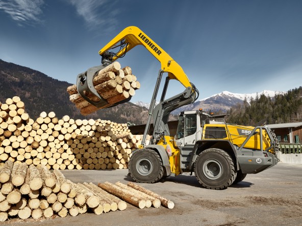 In the timber industry, force, reach and precision are essential – and this is precisely where Liebherr’s mid-sized and large wheel loaders come into their own. Equipped with Log grapplers or high dump buckets they are ideal for the timber industry. Especially for handling logs, Liebherr has a real powerhouse in its programme: the L 580 LogHandler XPower. With its reinforced lift arms, it achieves high handling heights and long reaches – ideal for transporting logs.