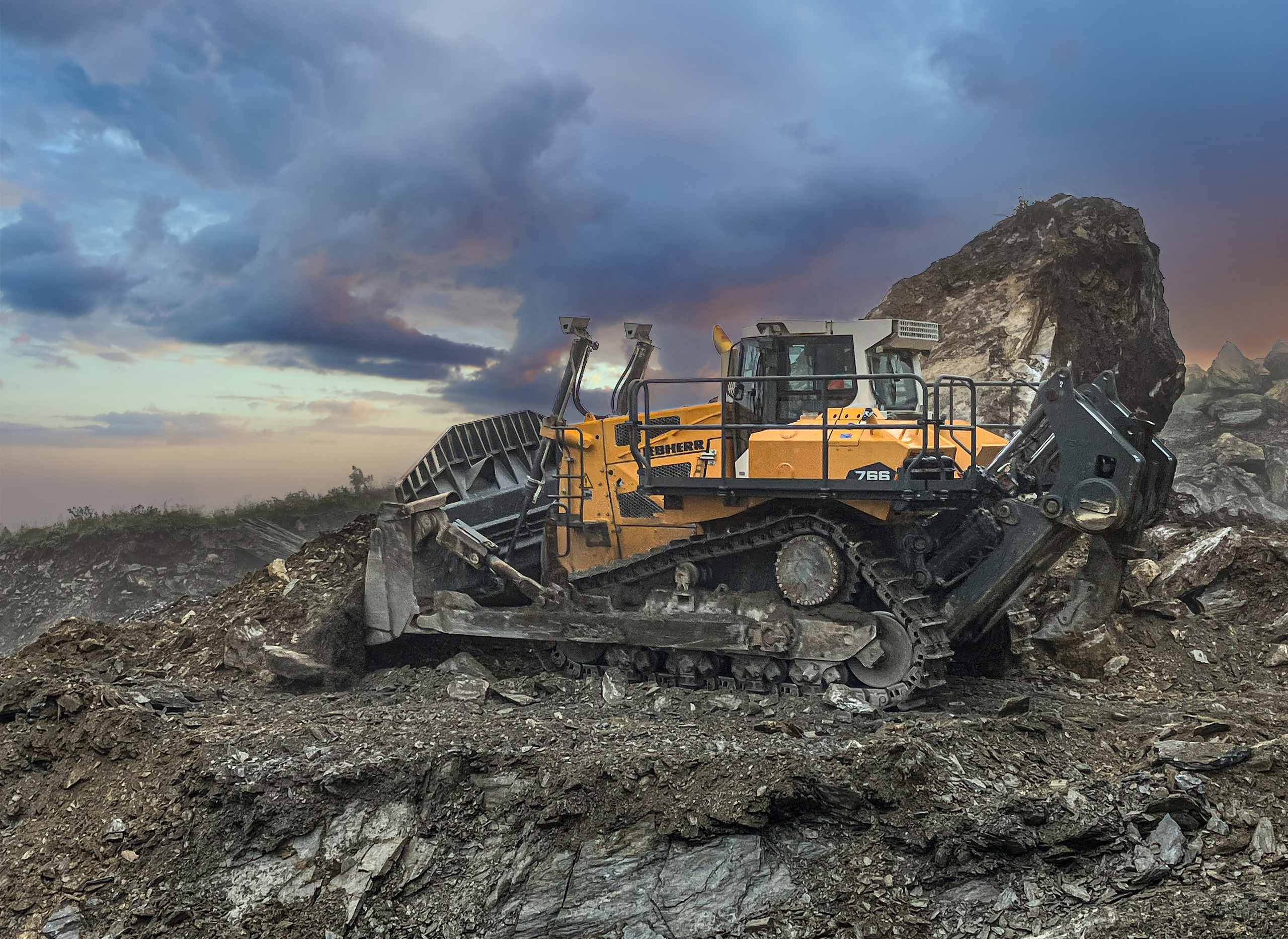 The PR 766 Litronic is a high-capacity crawler with new undercarriage design, combined with the advantages of diesel hydraulic drive and the operating control and cabin comfort, offers maximum capability at the highest level of efficiency. It features a large blade capacity of 13.60-17.00 m³, an infinitely variable hydrostatic travel drive, excellent operator comfort, and strong performance in demanding applications like mining, materials handling, and heavy earthworks.
